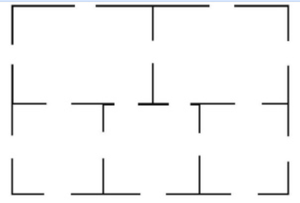 Can you find a continuous line that pass through each door exactly once? The line does not have to end where it started. Note that there is space to move around the big enclosing rectangle.