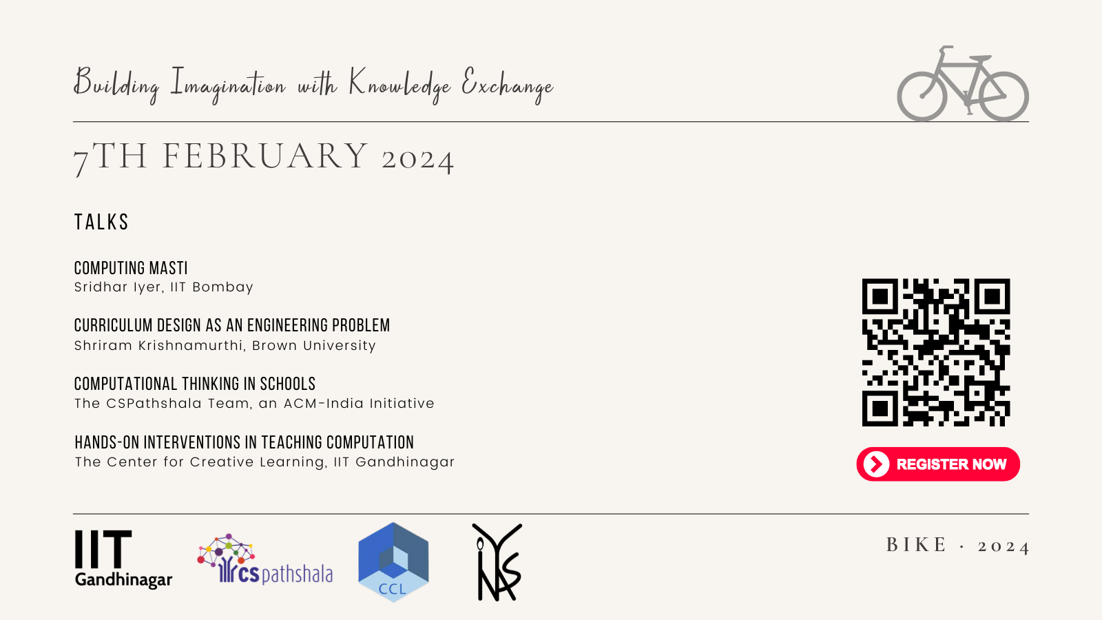 The discipline of Computer Science and Engineering at IIT Gandhinagar, in partnership with the Center for Creative Learning, is organizing a one-day workshop on Computing in Schools on the 7th of February, 2024 (Wednesday).