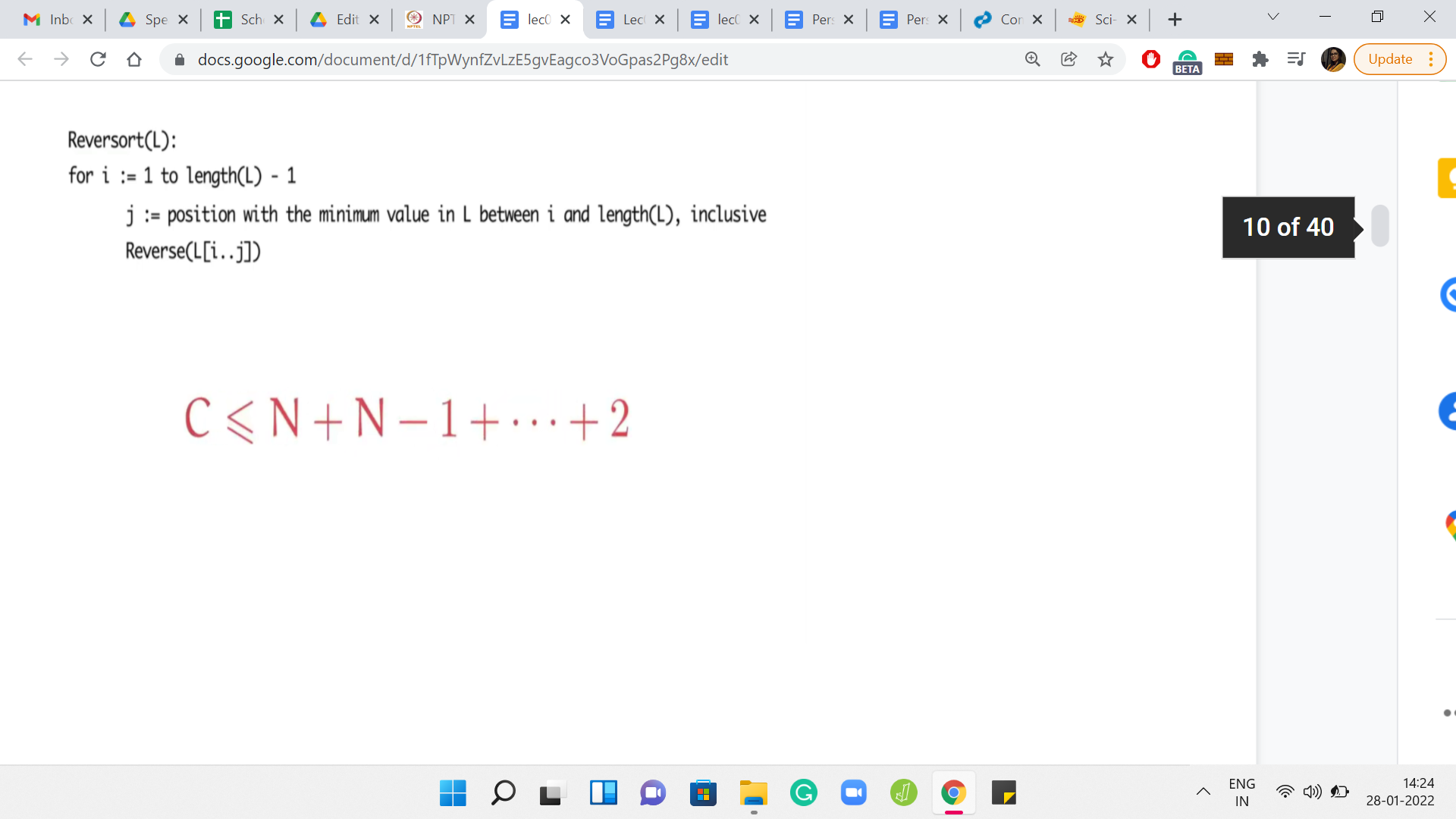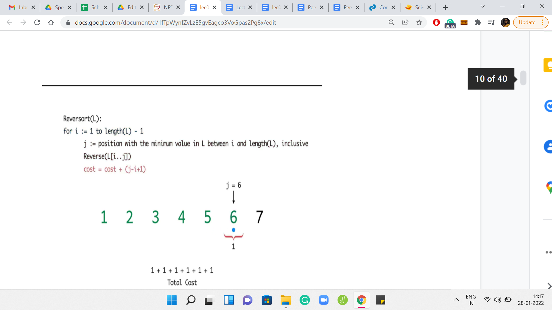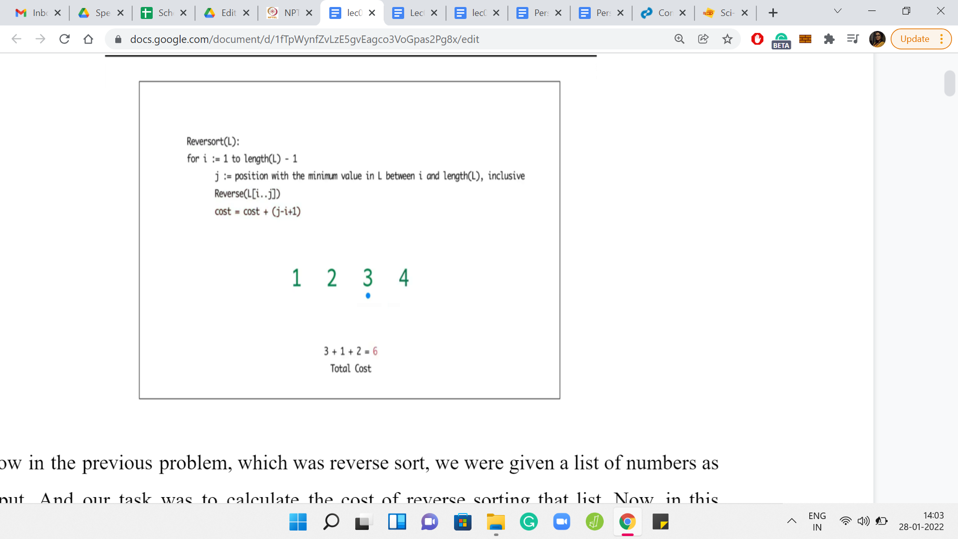 With that in mind, let us try and come up with a lower bound for the cost C. In other words if you are reversorting some array of length N, is there a minimum cost that you have to pay, irrespective of what the array looks like? If you feel like it, take a moment here to pause and think about this question.
