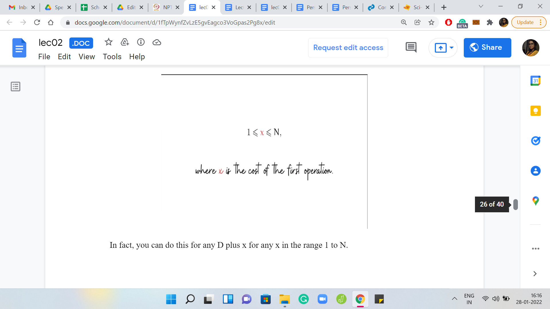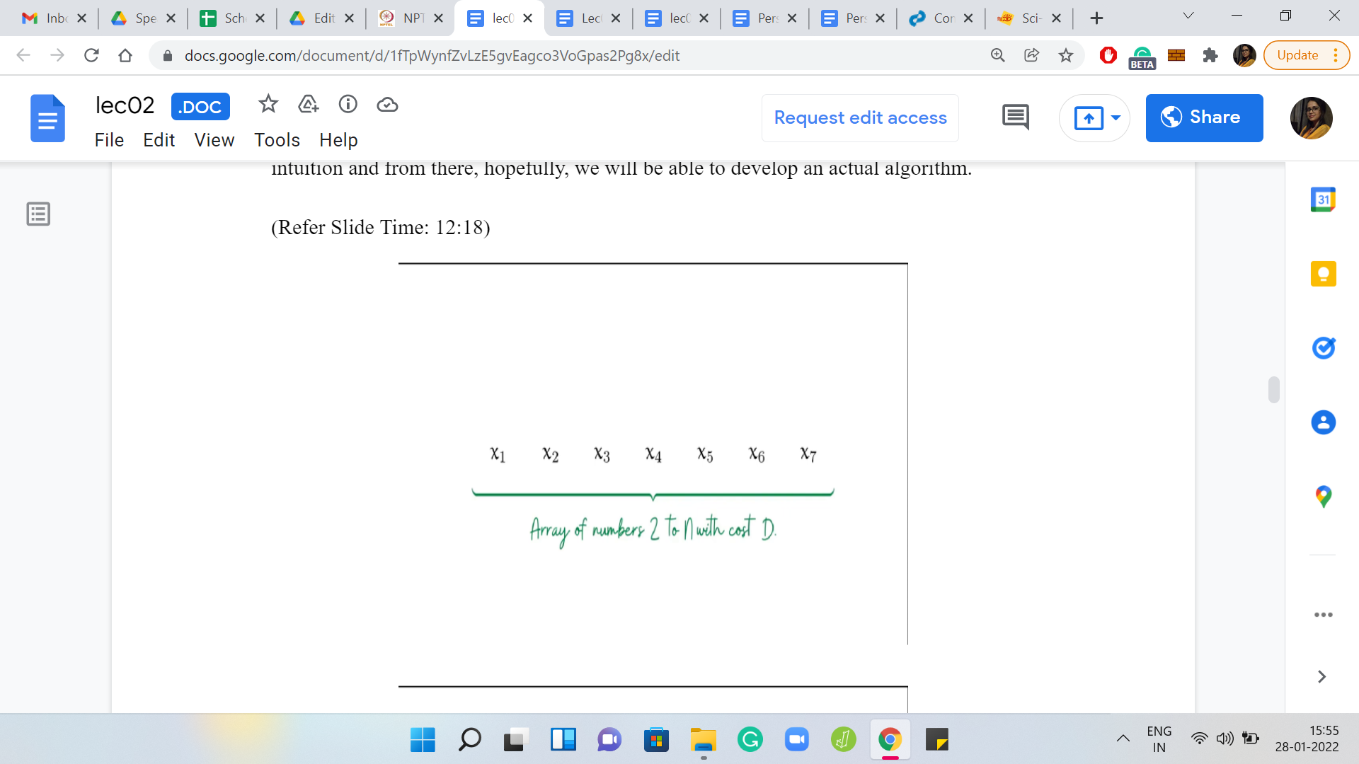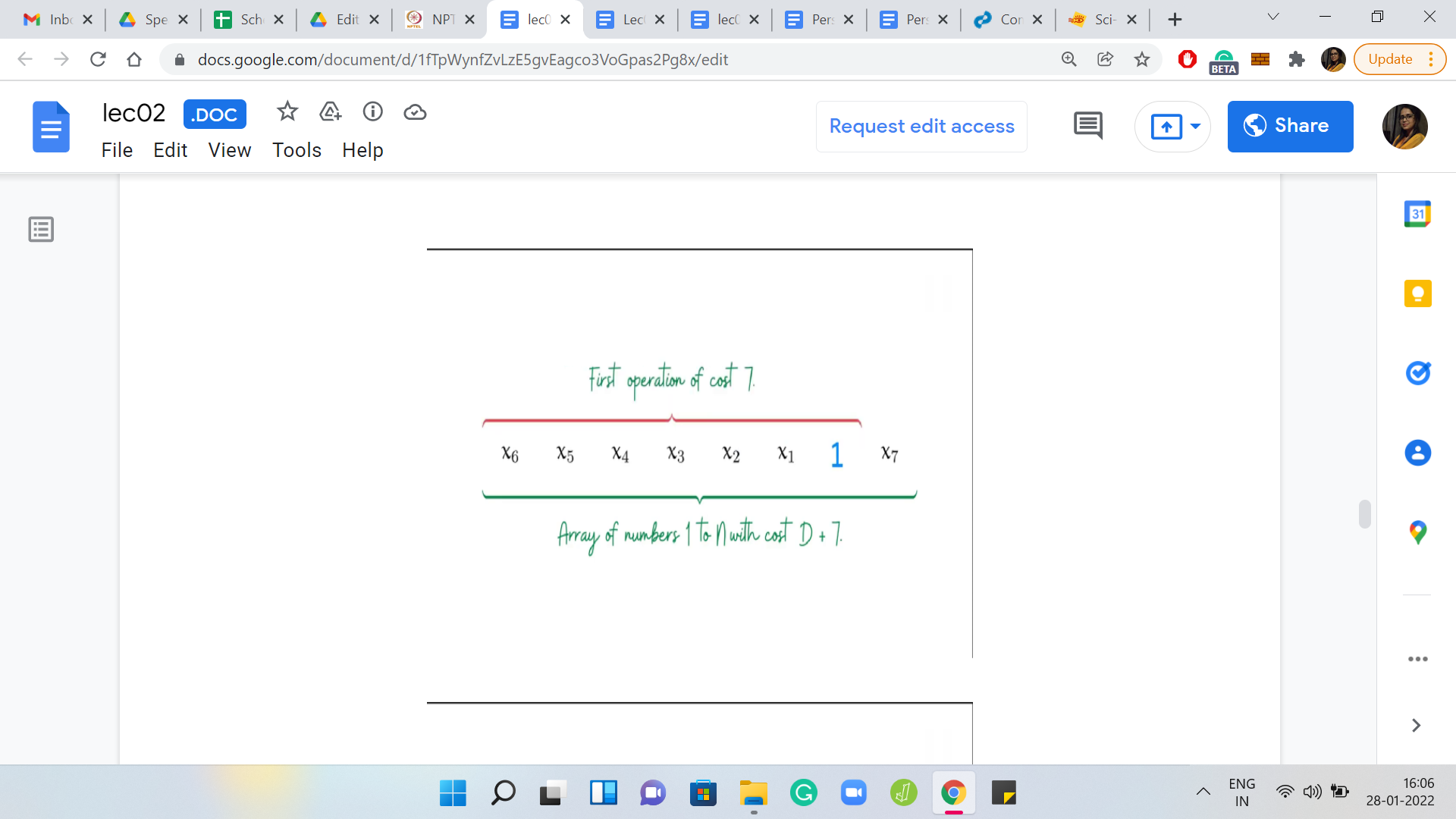 With that in mind, let us try and come up with a lower bound for the cost C. In other words if you are reversorting some array of length N, is there a minimum cost that you have to pay, irrespective of what the array looks like? If you feel like it, take a moment here to pause and think about this question.