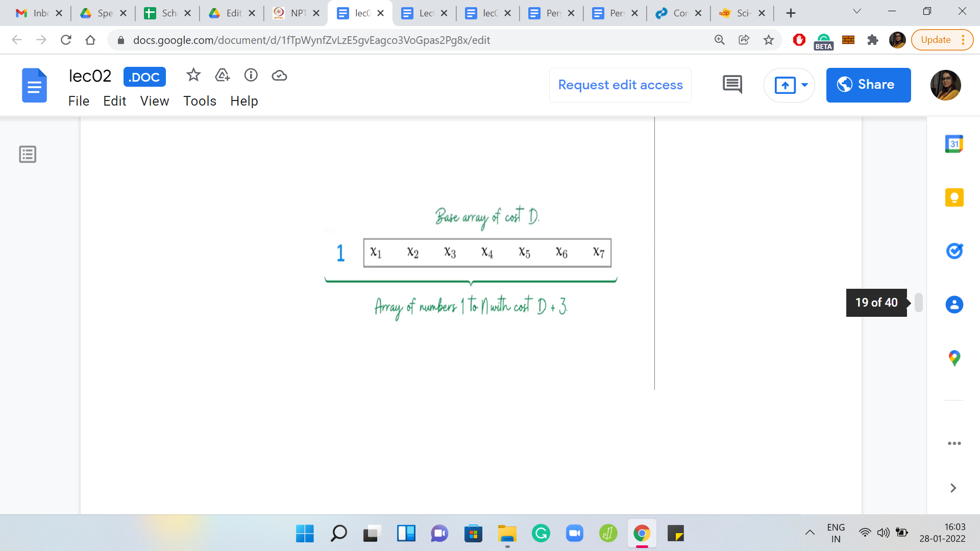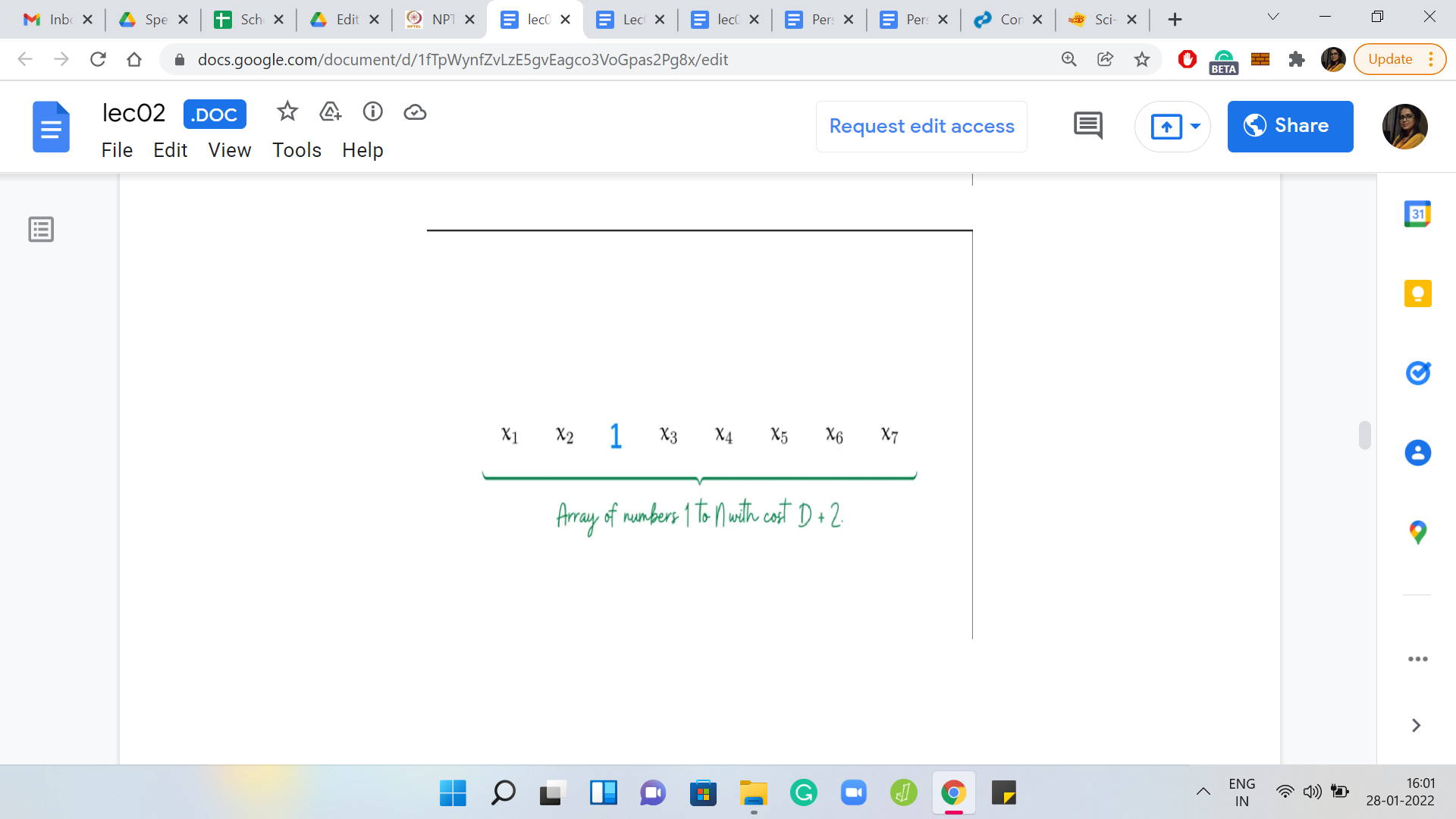 You can probably see where this is headed. If somebody gives you a base array of numbers from 2 to N with the cost of D, then you can make use of this array to build an array of numbers from 1 to N, with a cost of, say, D+4, D+5, and so on. In fact, you can do this for any D+x, for any x in the range 1 to N.