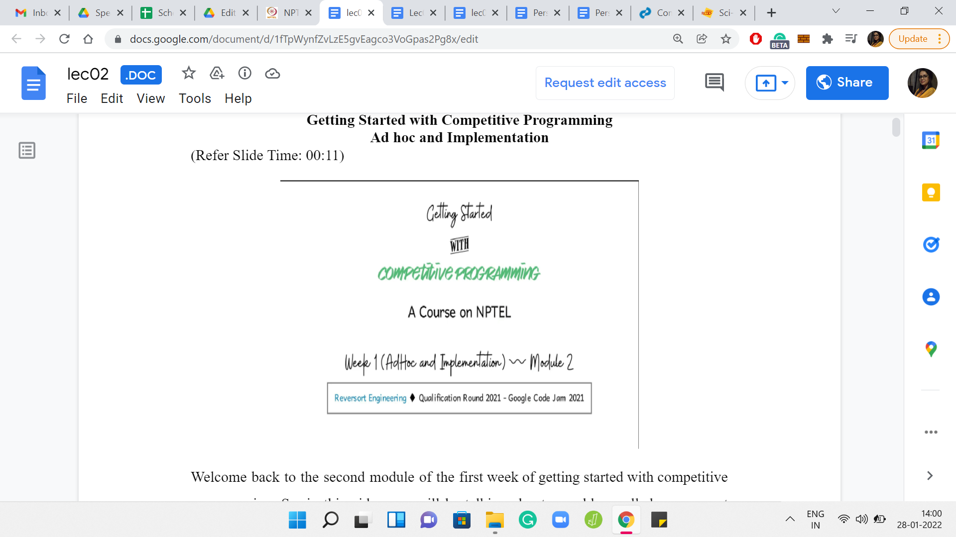 Welcome back to the second module of the first week of getting started with competitive programming. In this video, we will be talking about a problem called Reversort Engineering. This will be building upon the reversort algorithm that we discussed in the previous video. So, just in case you have not watched that, please make sure that you do before starting this video. Now, let us get started as usual with the problem statement.