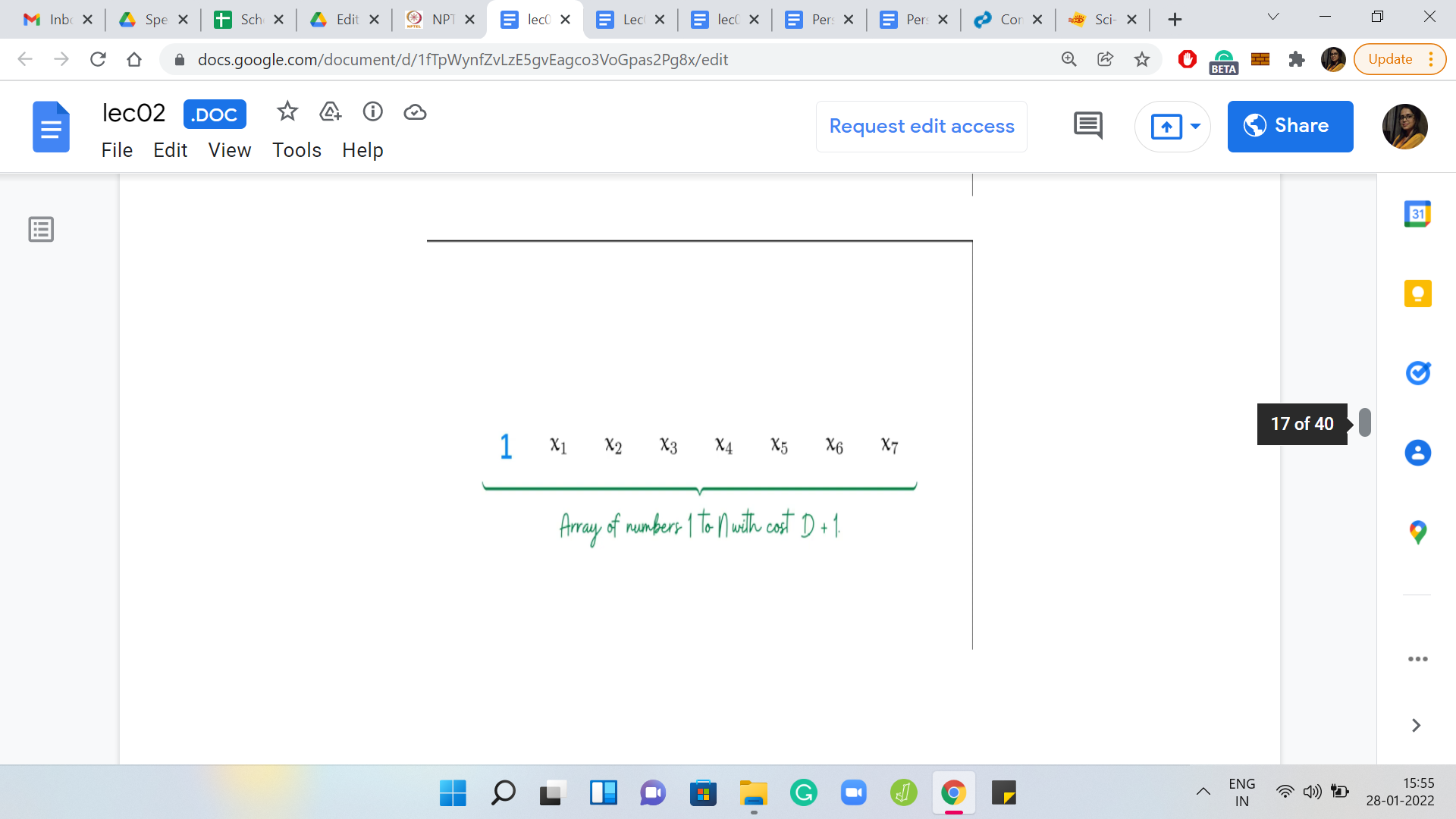 Specifically, we are given two integers n and C as input, and we have to find a list of n distinct integers between 1 and n, such that the cost of applying reversort to this list is exactly C or we conclude correctly that there is no such list. How do you go about tackling something like this? To begin with, notice that the question allows for the possibility that there might be some values of C for which this task is not feasible at all. So, maybe that is a good place to start - To try and understand what is a reasonable range of values for C where this task even makes sense.