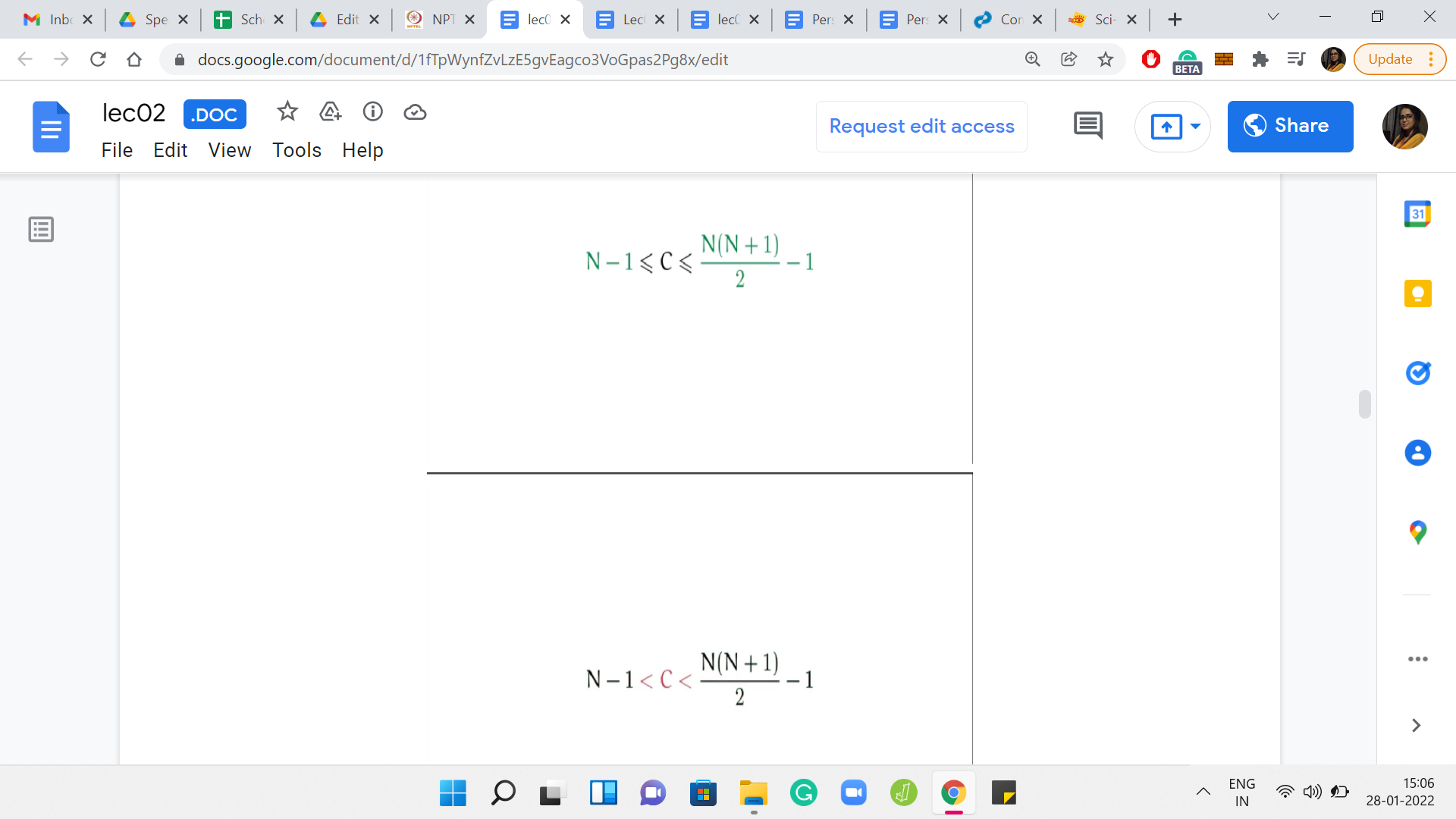 Let us go back to the big picture and try and understand why all this is useful. To begin with, remember that when you are working with N, here is the valid range of values for C. C has to be at least N-1 and at most {[N(N+1)]/2}-1. Let us add to this picture the valid range of values for C relative to N-1.