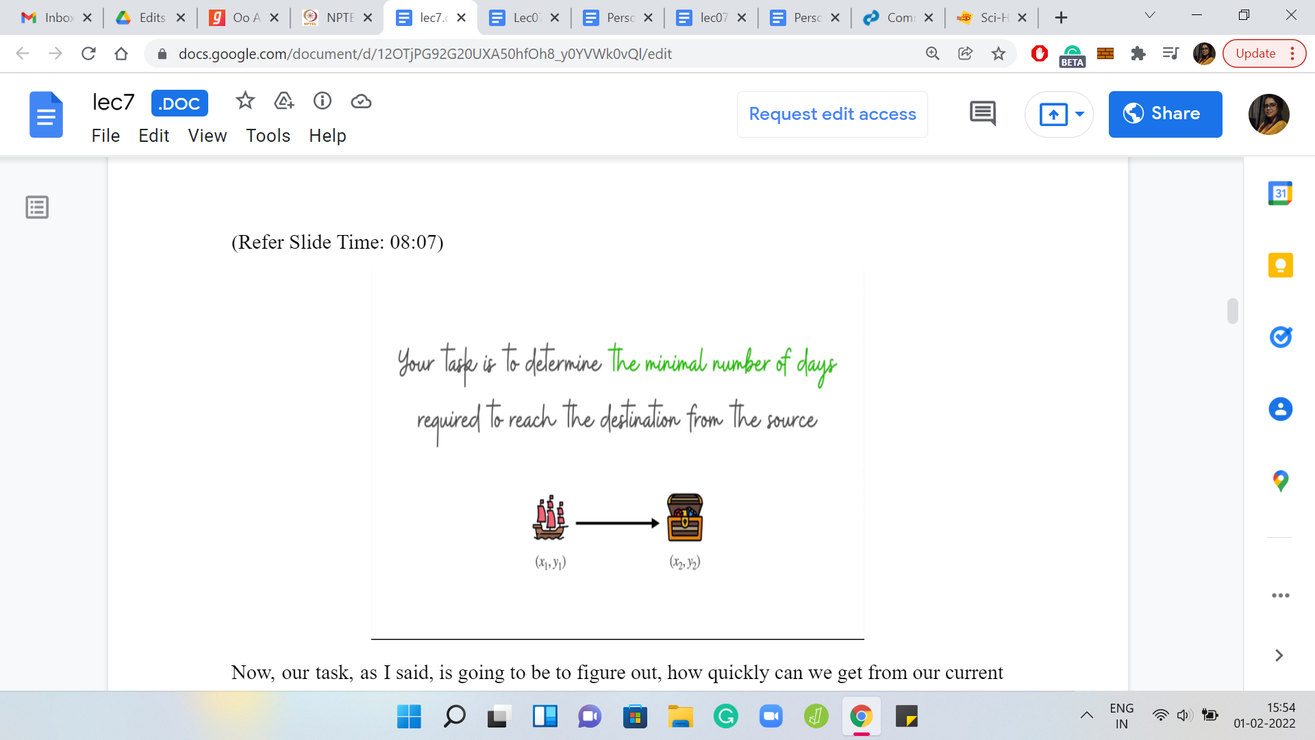 Our task is going to be to figure out how quickly can we get from our current position to our ultimate destination? Specifically, we want to find out what is the minimum number of days that we need to reach the destination in the presence of these winds, as they have been described by the weather forecast.