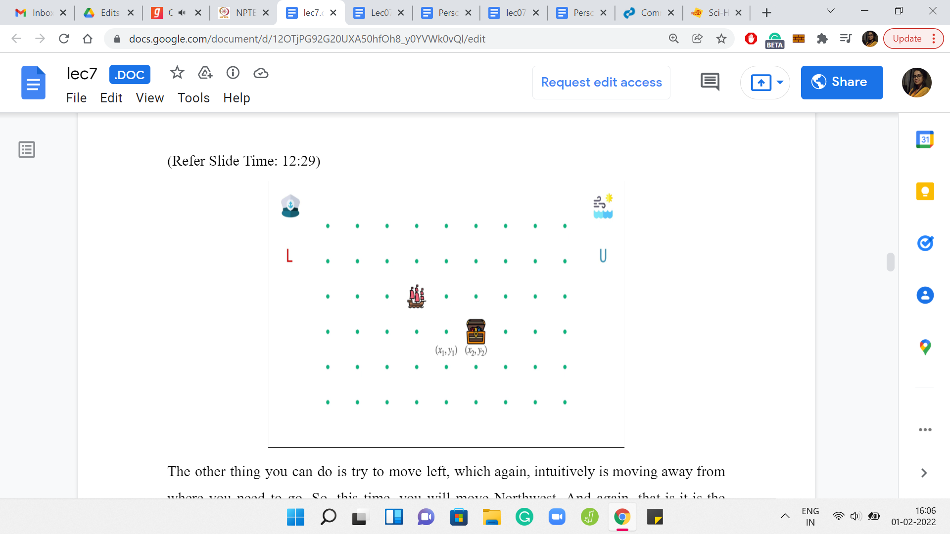 Notice that it is the best you can hope for in terms of the number of steps that you need to expend. But if this was the entire story, this would probably be an implementation problem that we will have discussed last week. So, the twist is that, as I mentioned earlier, you are navigating the ocean in windy weather and the winds are pushing the ship around in different ways. You have to try and figure out whether you can get to the destination in the presence of these winds. How are the winds modeled? How are we given information about what the winds are doing?