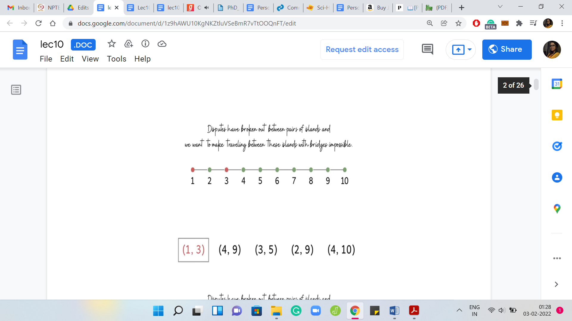 So we are given ‘m’ requests. Each request is a pair ‘ai bi,’ indicating which pair of islands are involved in the corresponding dispute. What you want to do is you want to remove bridges in such a way that every request is satisfied. That is the entire problem statement.