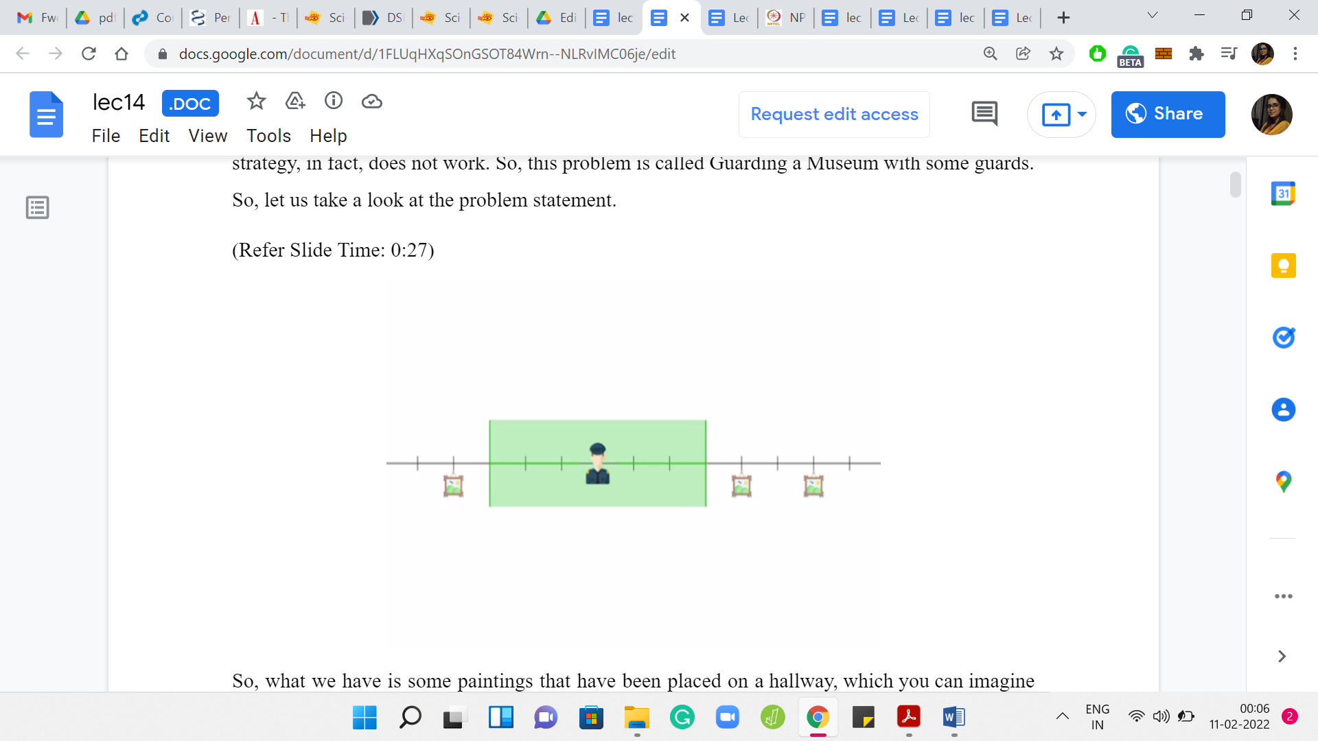 Let us continue with our second example of an optimization problem where the natural greedy strategy, in fact, does not work. This problem is called ‘Guarding a Museum’ with some guards. Let us take a look at the problem statement.