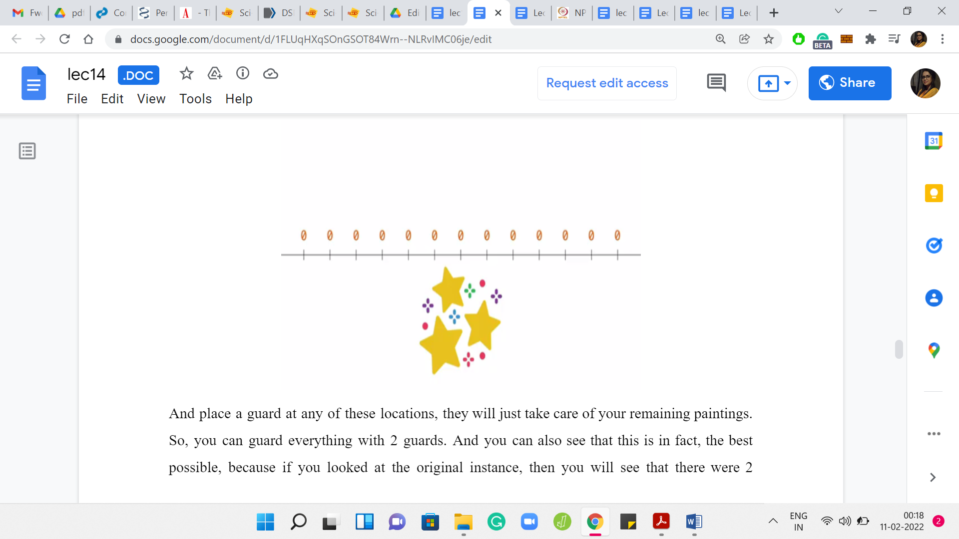 So, there are variations of this problem where you do not want any particular location to be guarded, or to be observed more than once because that is just physically not desirable. But in this variation of the problem that we are discussing now, we do not mind every painting is observed more than once. But we do require that every painting is observed at least once. That is the goal. That is a feasible solution — where every painting is guarded at least once.