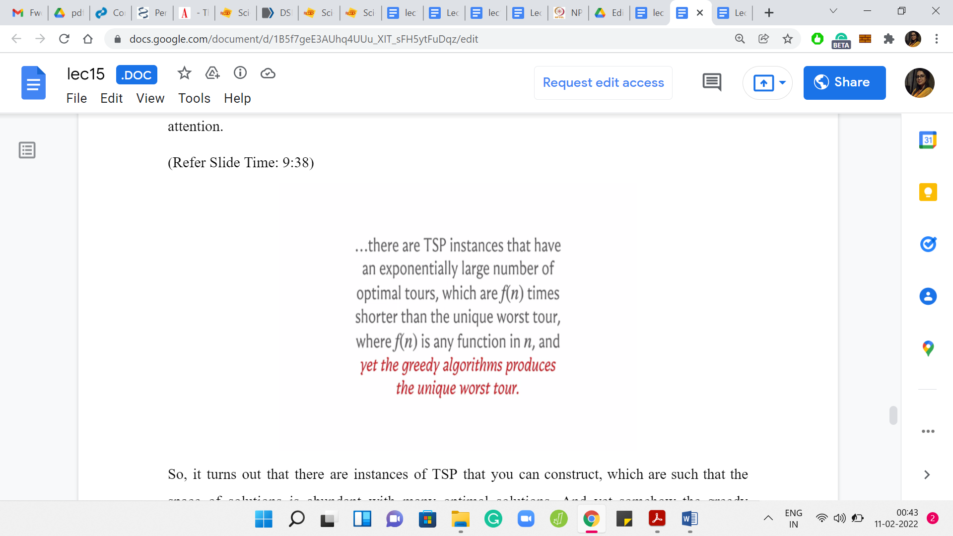 All this is not to say that one must completely disregard greedy approaches, even to TSP. It is conceivable that there are subclasses of instances where the greedy approach performs okay or perhaps there are other heuristics, which are a more sophisticated mix of ‘greedy’ inspired strategies, and other common-sense pre-processing that works well in particular situations. So, this definitely been a lot of work along these lines and you can find out more about it if you were to even read the Wikipedia article on Traveling Salesman.
