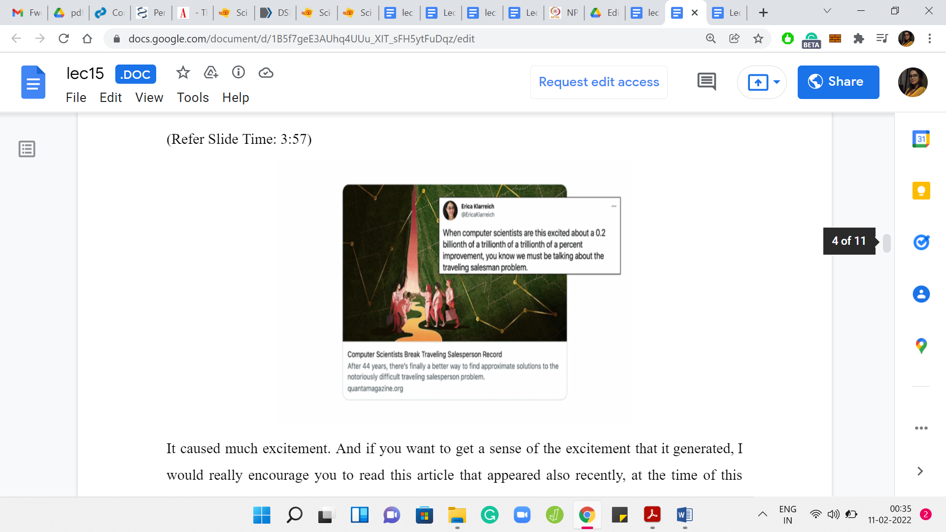 If you want to get a sense of the excitement that it generated, I would really encourage you to read this article that appeared recently, at the time of this recording, in Quanta magazine, covering mostly the development around this paper, but also covering a lot of interesting history and trivia about the problem. This tweet about this article really reflects the sentiment of Computer Scientists around Traveling Salesman and shows how deeply we care about it and how fundamental the problem is to the field at large.