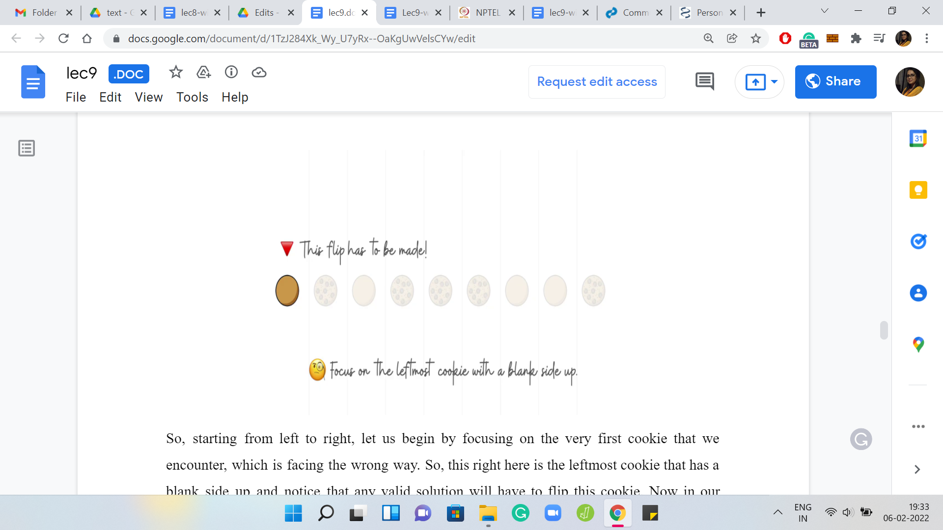Based on these two pieces of information, which is the original state of the cookie, and the number of flips that it has experienced, can you come up with criteria for when you should actually flip this cookie? Take a moment here to think about this because once you have come up with these criteria, you would have a complete description of the algorithm that you need to implement.