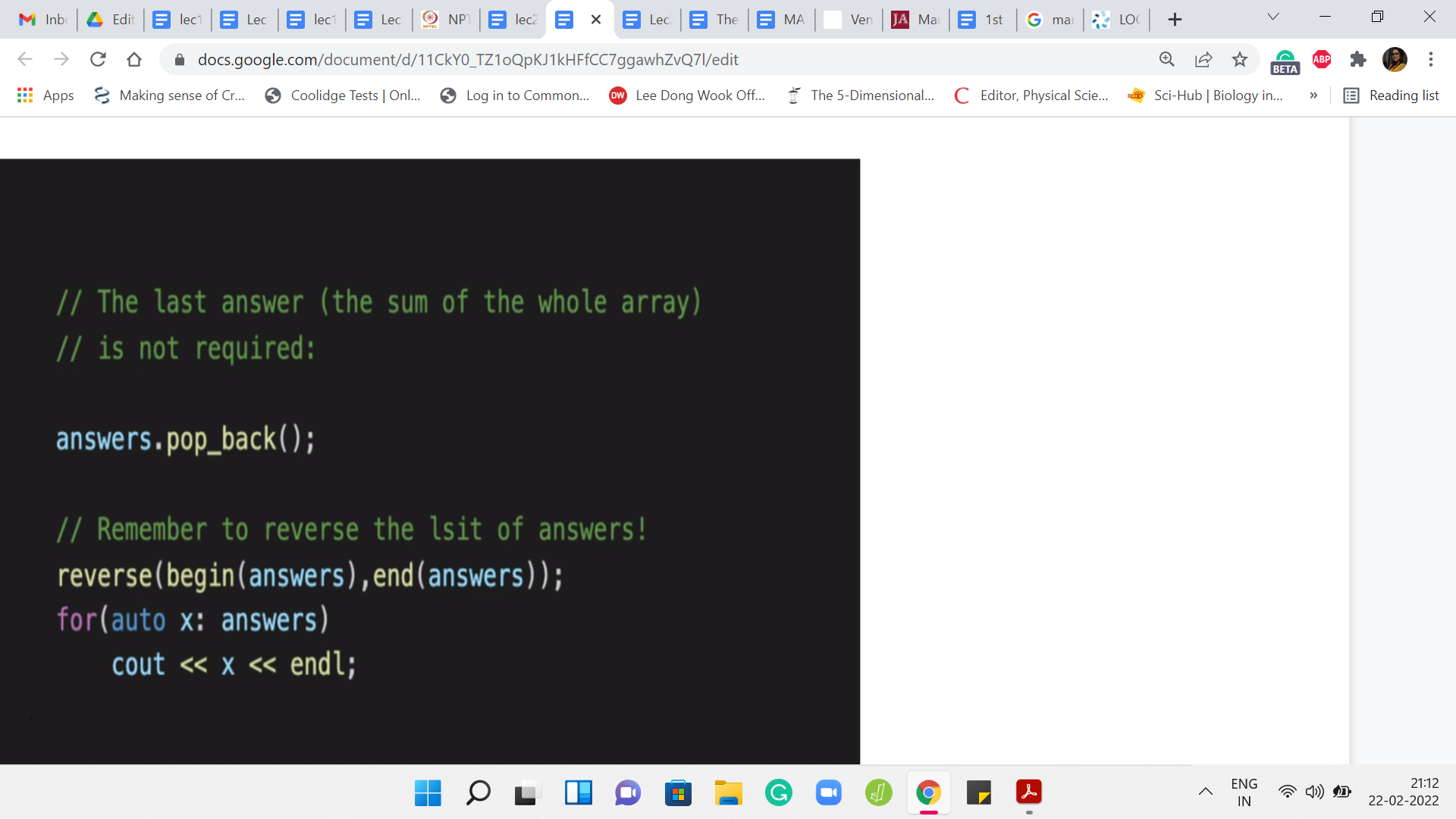 The last thing that you add to the answers array is not really relevant. We want to get rid of it. That is the pop operation that you see here. After this, your answers array is ready for output. Do remember to reverse the answers array because we have been collecting the answers in the opposite order of what actually transpired.