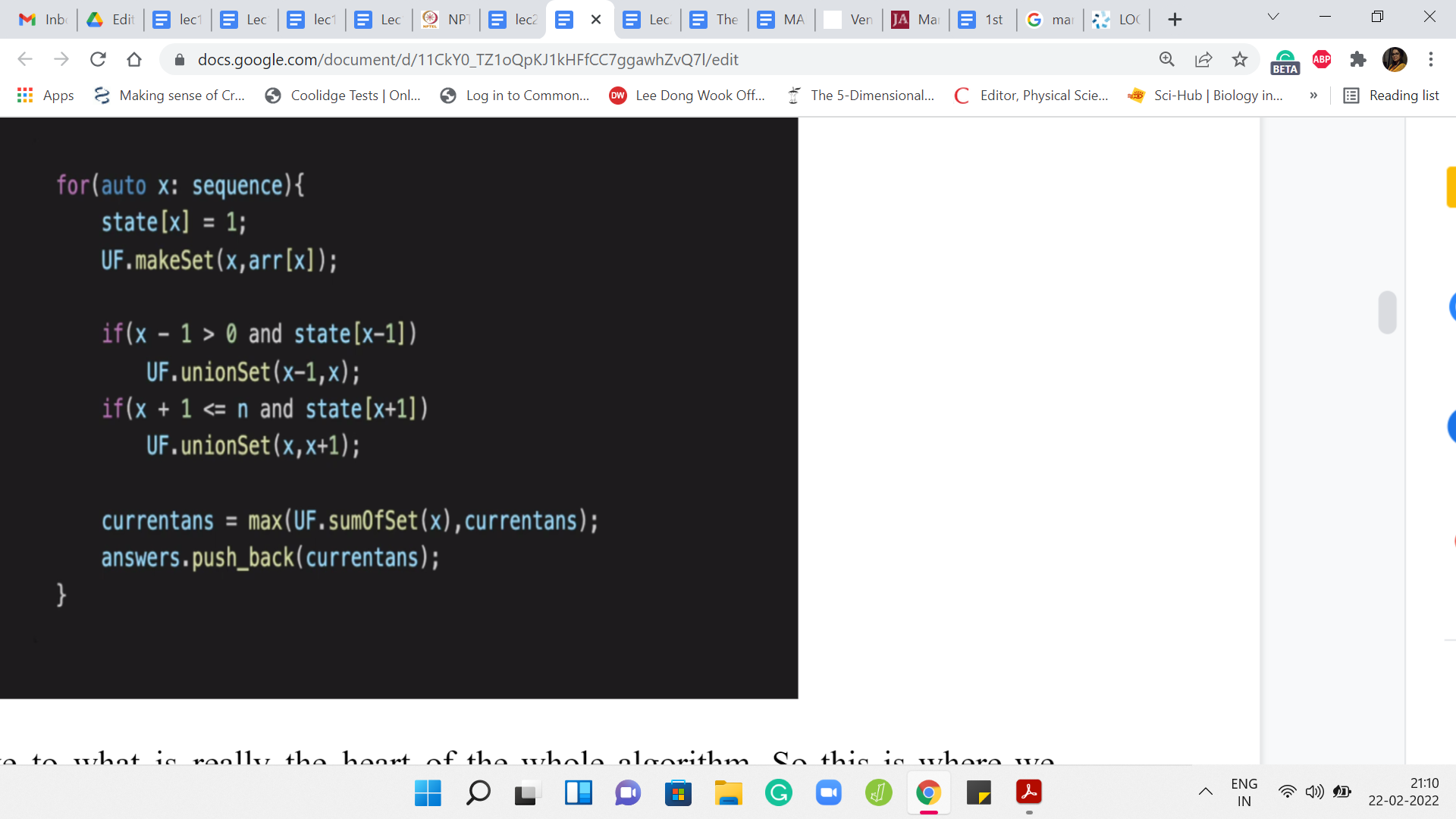Let us move to what is really the heart of the whole algorithm. This is where we actually go through the process. We are going to go over the sequence. Then we are going to do the union operations based on the situations that we have already discussed in the previous video. First of all, when we say that the ’x’th element is now being added, we modify the state of the ’x’th location to 1, to indicate that this location is now occupied.