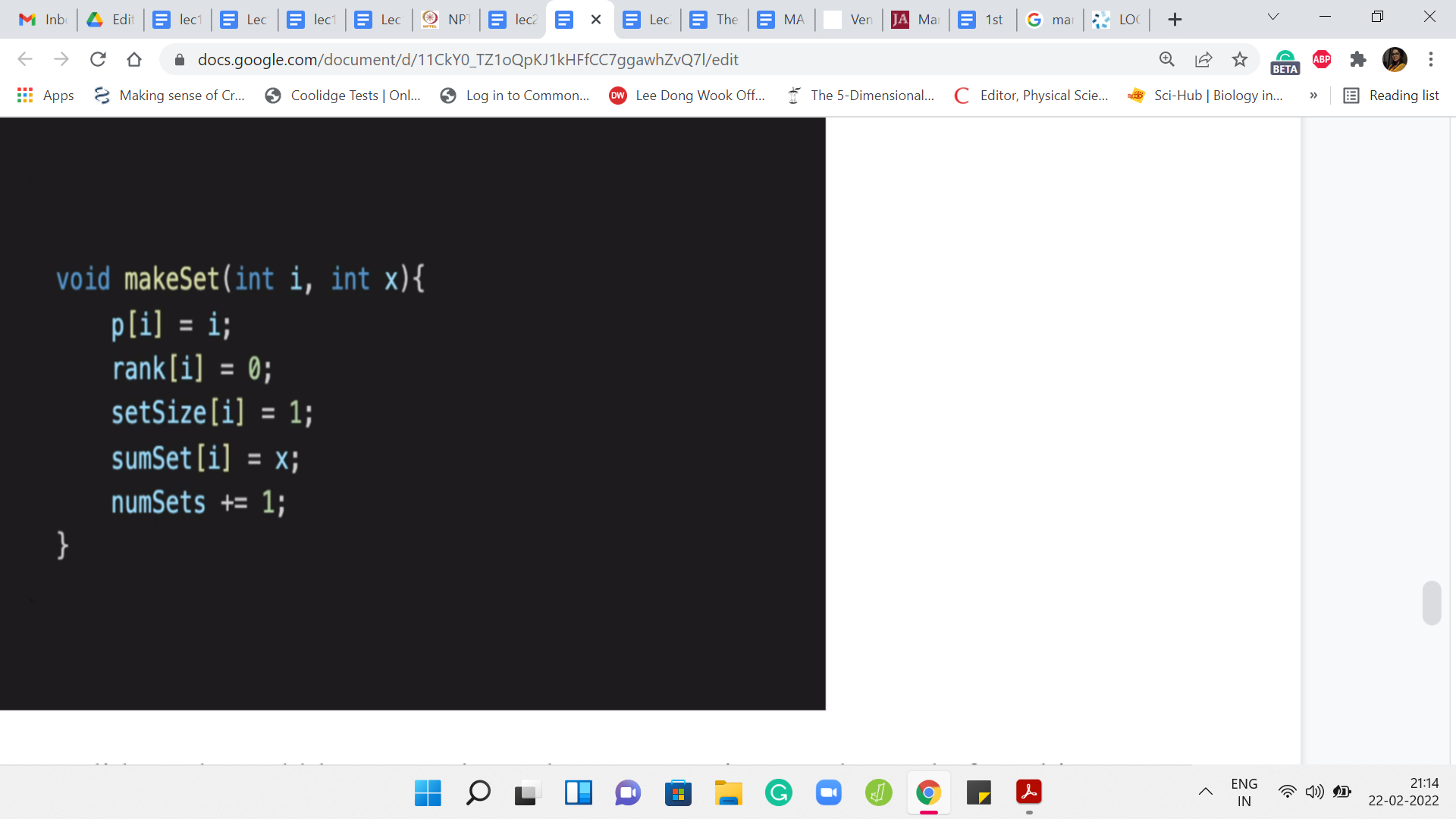 One function that we did need to add here was the makeSet operation. Even before this, I will mention that you have to adjust your initializations a little bit. In the previous constructor, the whole thing was set up to capture the state of ‘n’ singleton sets. We wanted every element to be its own set. What we do instead is lay the groundwork. We create enough room for ‘n’ sets to be or ‘n’ elements to be eventually added. But initially, all the sets are empty.