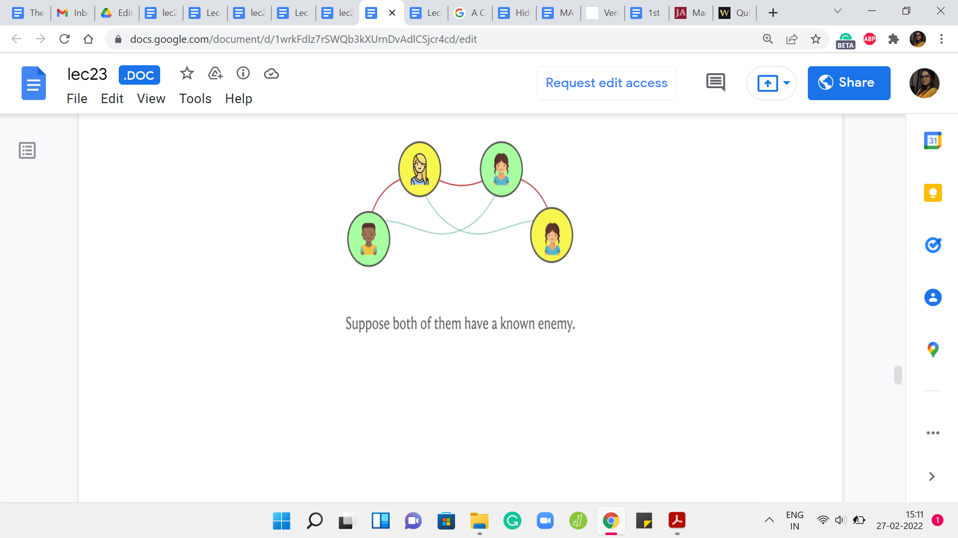 Let us say that you are supposed to be making enemies of x and y. Let us say that they have enemies of their own, which are denoted by ‘a’ and ‘b’ respectively. Let us say x has a known enemy, in ‘a’ and y has a known enemy in ‘b.’ If you go back and think about how we dealt with this case previously.
