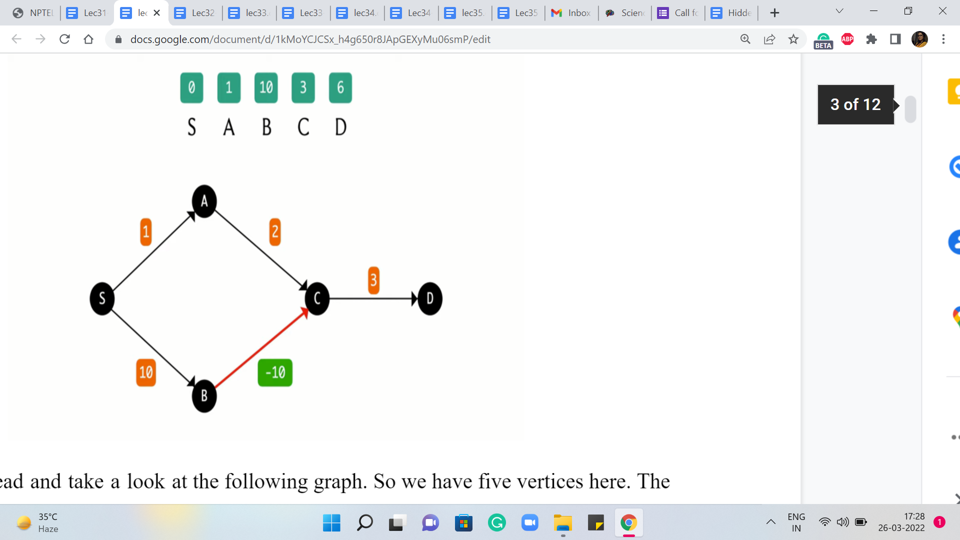 So perhaps you have already come up with your own examples or you would like to come up with something yourself. So feel free to pause the video at this stage and play around a little bit because what I am going to do next to start off with an example just to make a point about the ways in which Dijkstra’s algorithm can fail in the form that we had discussed it last time. It could potentially give the wrong answer if you do allow for edges that have negative weights.