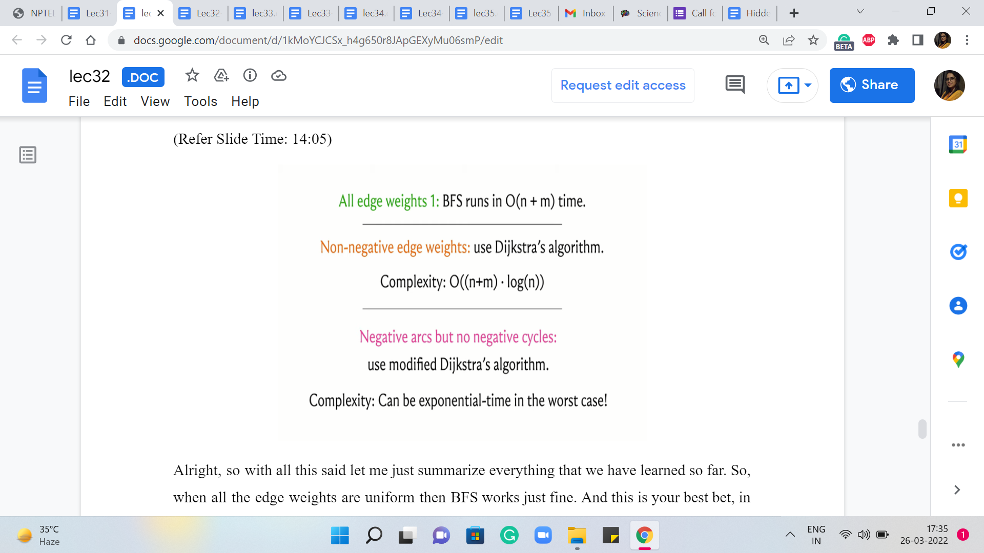 Alright, so with all this said, let me just summarize everything that we have learned so far. So, when all the edge weights are uniform then BFS works just fine. And this is your best bet, in terms of running time. So if you encounter a shortest path-based problem, if there is a problem that can be modeled as a shortest path situation, and all the edge weights happen to be uniform, by all means, go ahead and use BFS. It is elegant, it gets the job done, and it is fast. So that would be the right choice.