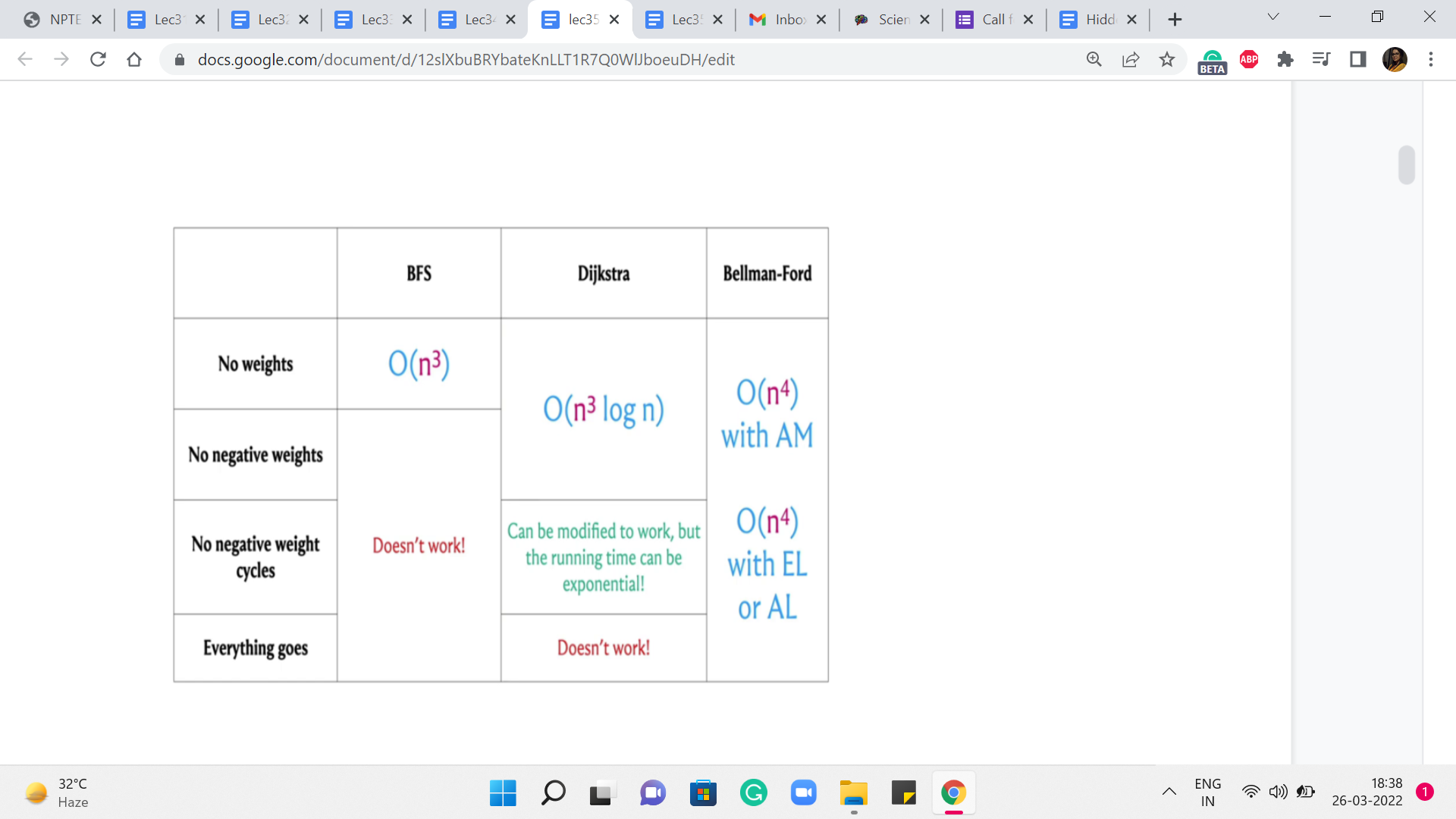Now, let us consider these running times for the case when the number of edges is as bad as it can be. And let us say that it is a dense graph, the number of edges is roughly n squared. In that case, these running times end up looking like this. And you can see that it is only the case when we have no weights at all, that we get an n3 running time, which is what we obtained by running BFS n times.