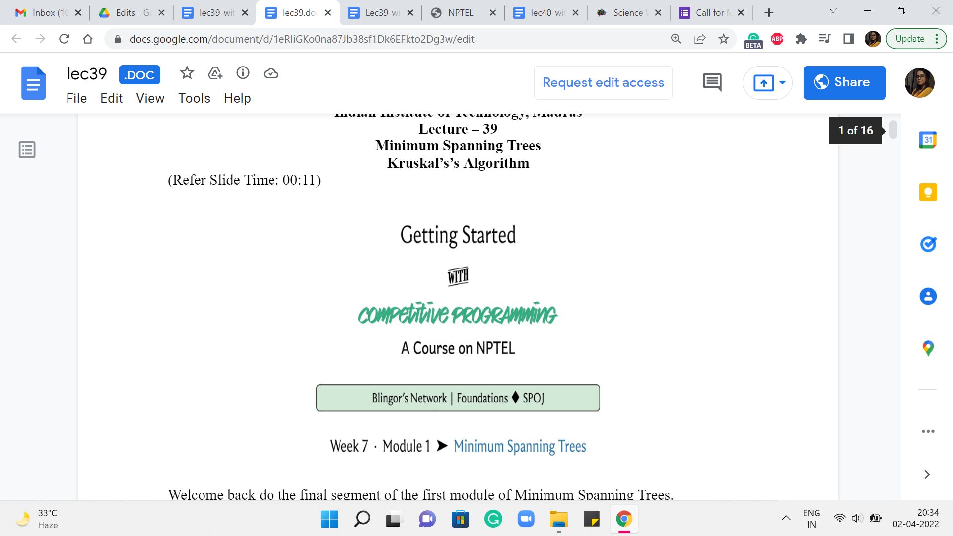 Minimum Spanning Trees - Module 1 (Kruskal’s Algorithm)