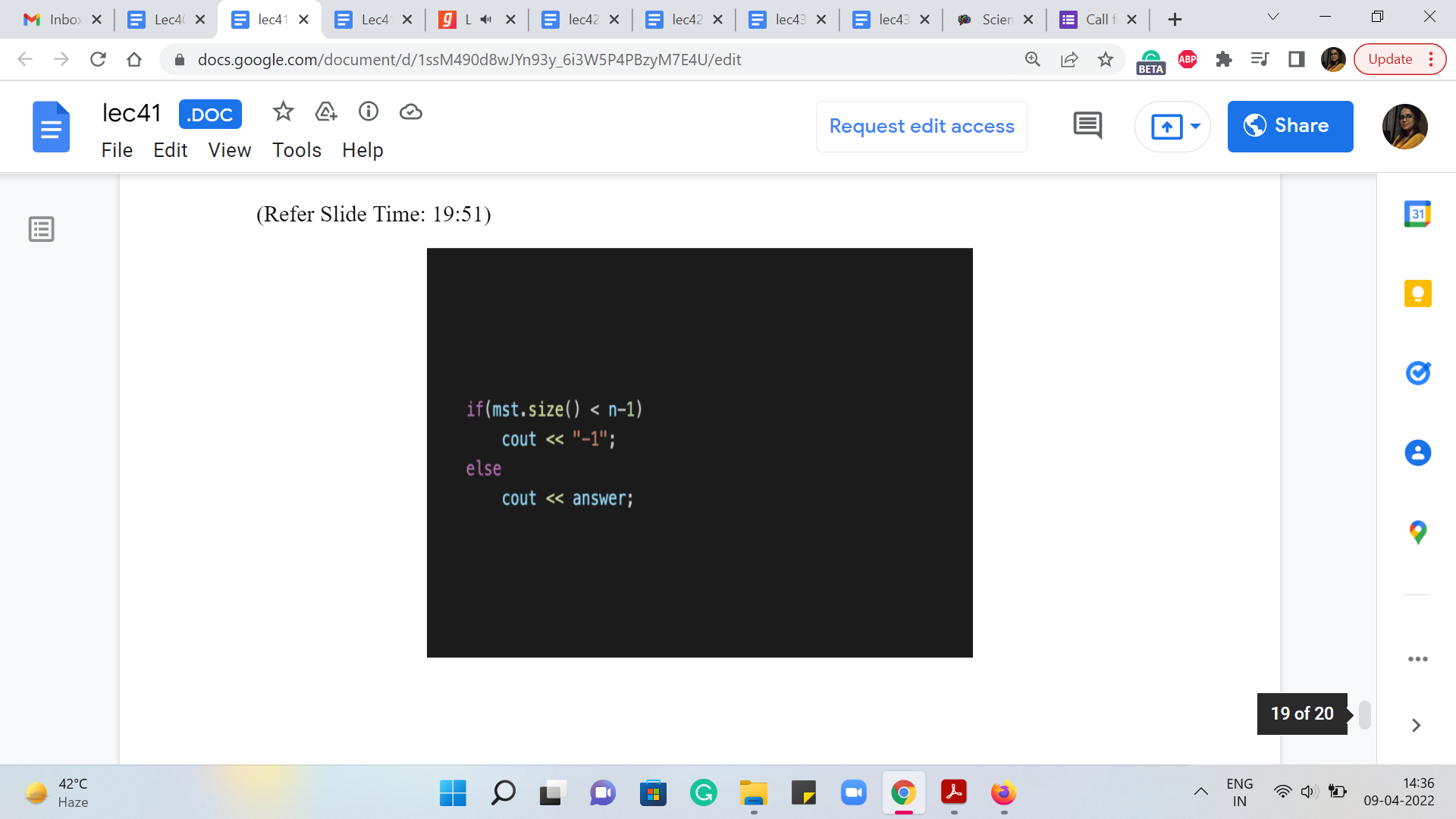 And after this, all we have to do is a sanity check to figure out if at the end of this we actually managed to build a complete hierarchy or not. So, having built up the MST and kept track of it, I am writing this condition in terms of the number of edges in the MST variable. If we added less than ‘n - 1’ edges, then that means that we do not have a spanning tree. So, we say that this was an impossible scenario that was given to us.