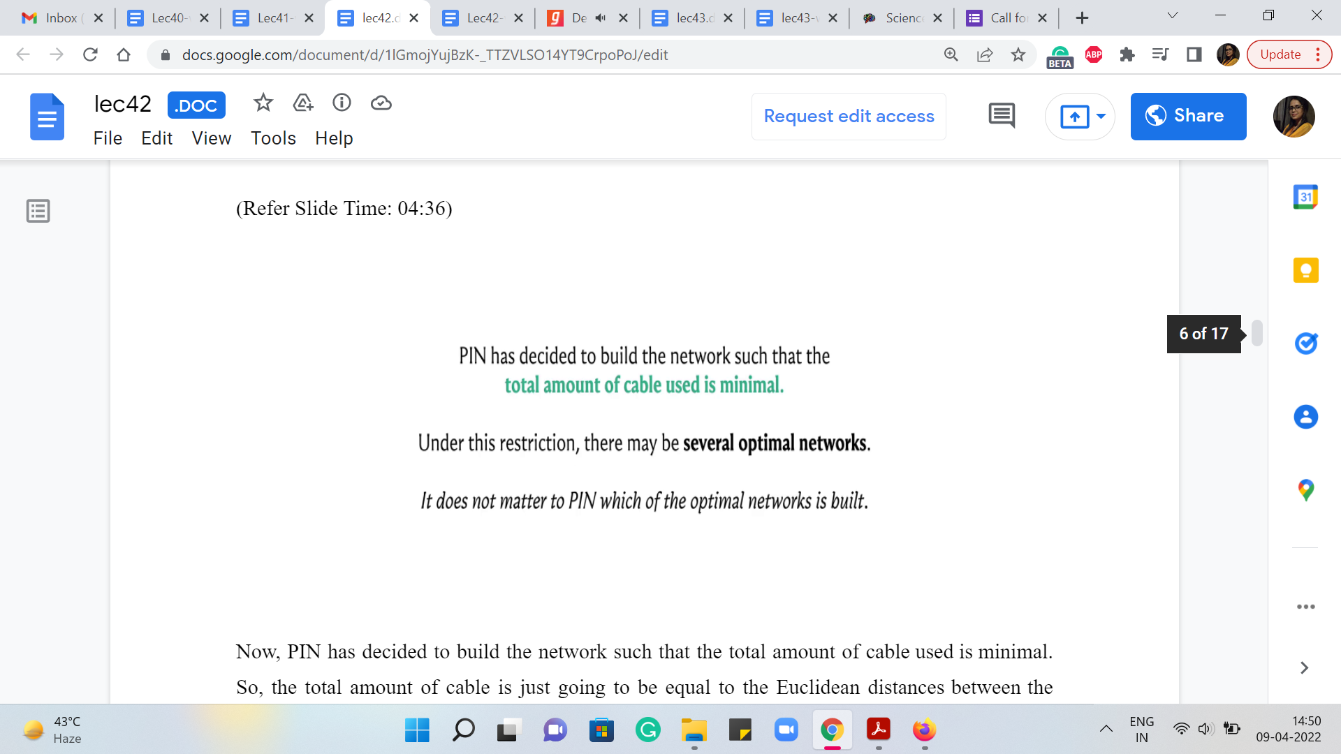 So, I think once you go through the problem statement, you will realize that what you are looking for is definitely a spanning tree of some sort. But the objective that you are optimizing for, on top of minimizing the cost of the spanning tree is also something else. And that is what needs to be figured out carefully.