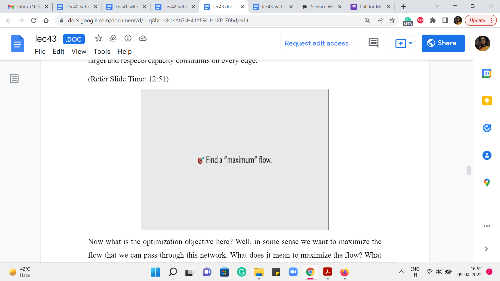 So, my hope is that through examples that we talk about this week and the next you will also see why it is not just this one problem but a really powerful technique in the sense that there can be so many other problems, which may not look like they have anything to do with flows and in fact they may not even look like they have anything to do with graphs, but they can still be in some sense modeled or converted as an instance of the flow problem and then everything that you have learned here will become really relevant.
