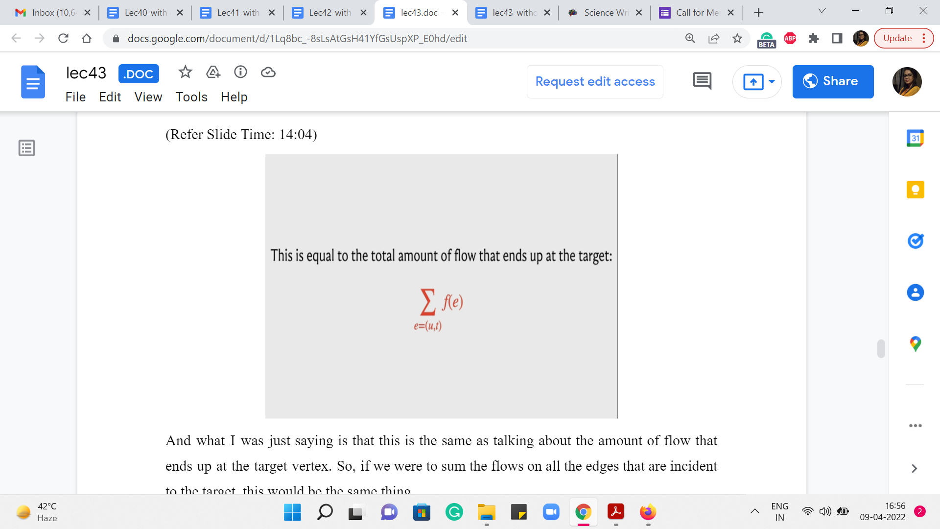 And what I was just saying is that this is the same as talking about the amount of flow that ends up at the target vertex. So, if we were to sum the flows on all the edges that are incident to the target, this would be the same thing.