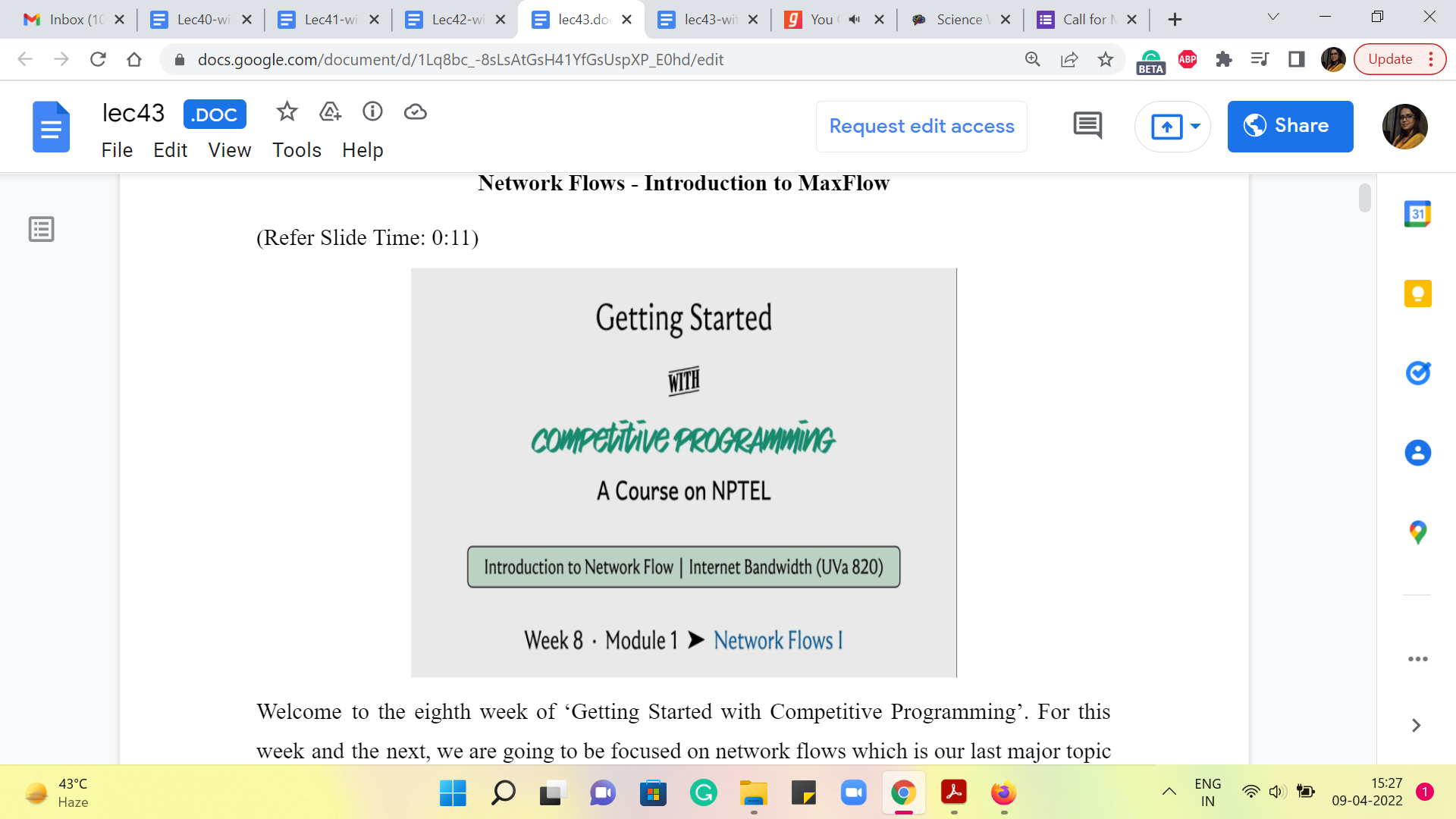 Welcome to the eighth week of ‘Getting Started with Competitive Programming.’ For this week and the next, we are going to be focused on ‘network flow,’ which is our last major topic in the context of graph algorithms. If you are seeing the flow problem for the first time, then it may strike you as a really specific problem. And you may wonder if it is worth all the trouble to just learn one specific problem.