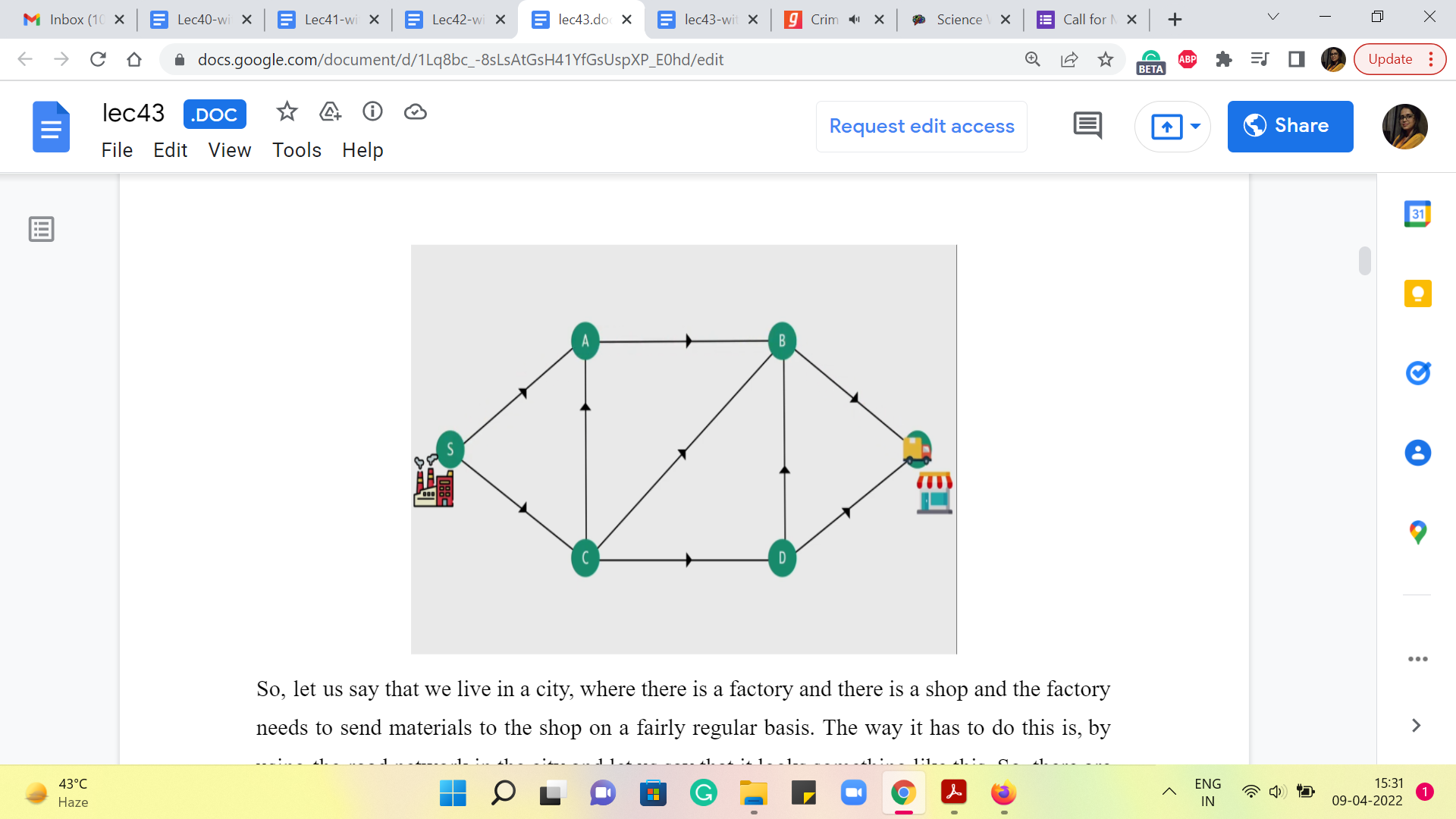 And let us say this keeps happening to the point where you are given numbers for every road in the network. And you are told that look this road can only handle so much traffic at a time. And now you are just back to the drawing board and you are trying to figure out, what is the maximum number of trucks that I can send simultaneously from the factory to the shop.