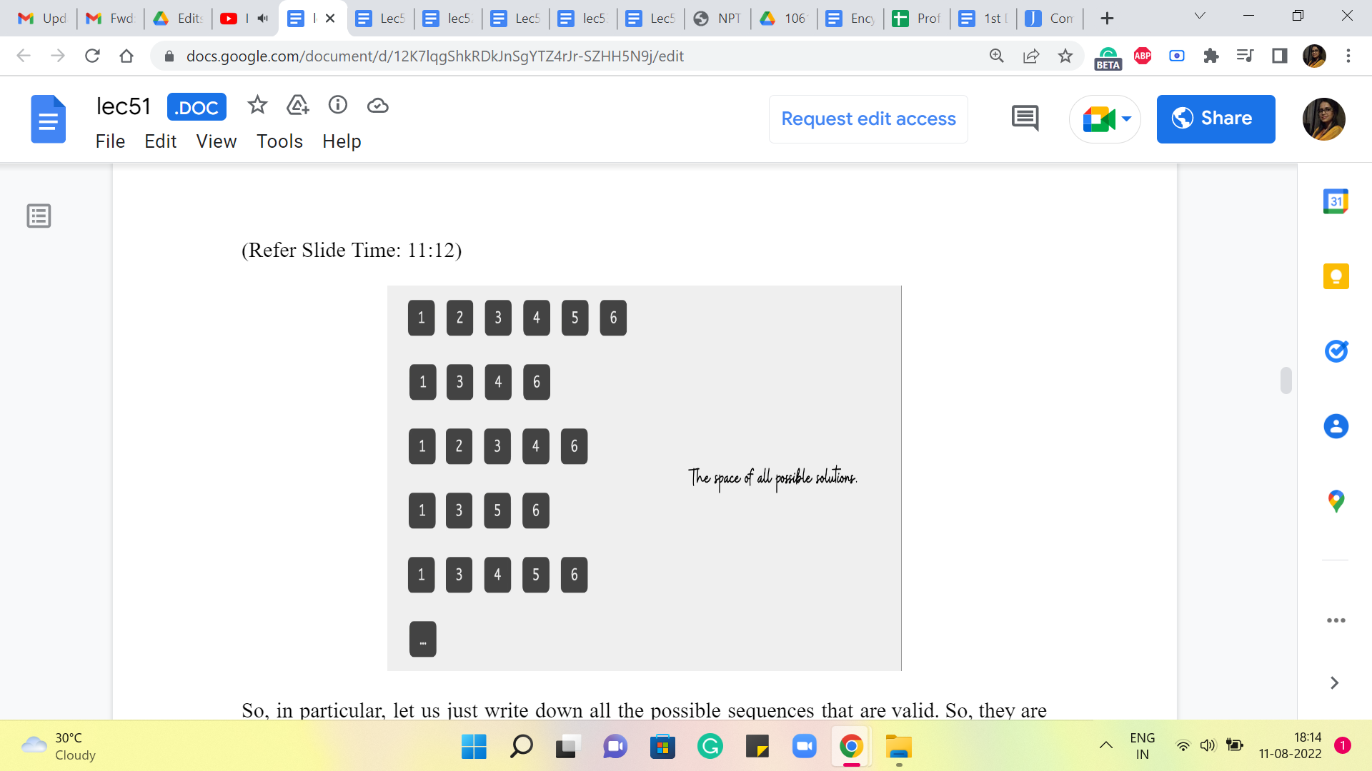 So, in particular, let us just write down all the possible sequences that are valid. So, they are not all in here. So, this is just sort of a partial list, because of lack of space and also as I was saying earlier, this does look like, we are considering the whole space of valid sequences. So, this might remind you of the Brute-Force approach that we were talking about earlier.