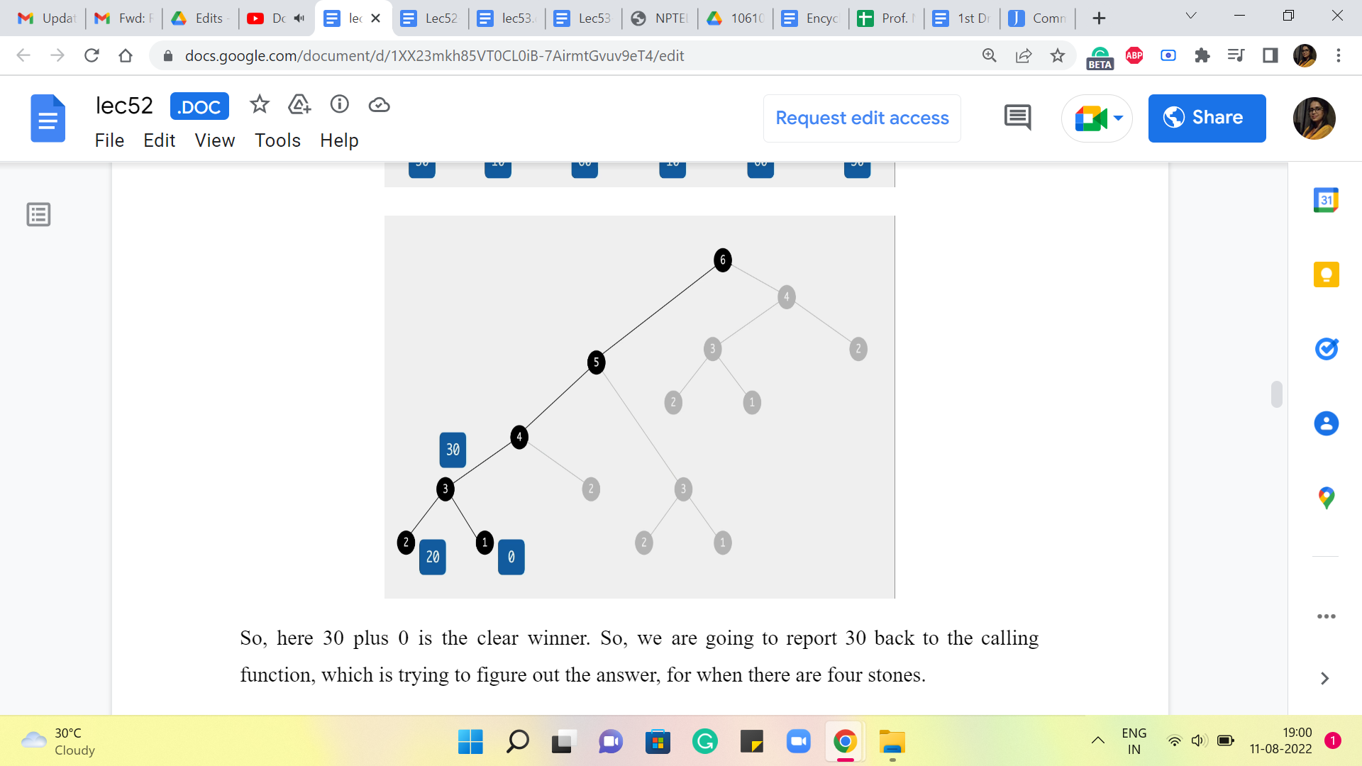 So, here 30+0 is the clear winner. So, we are going to report 30 back to the calling function, which is trying to figure out the answer, for when there are four stones.